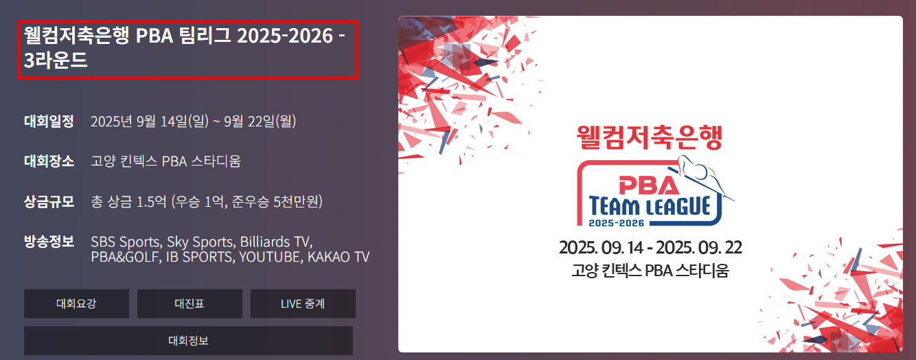 - 대회명 : [웰컴저축은행 PBA 팀리그 2025-2026] 3라운드